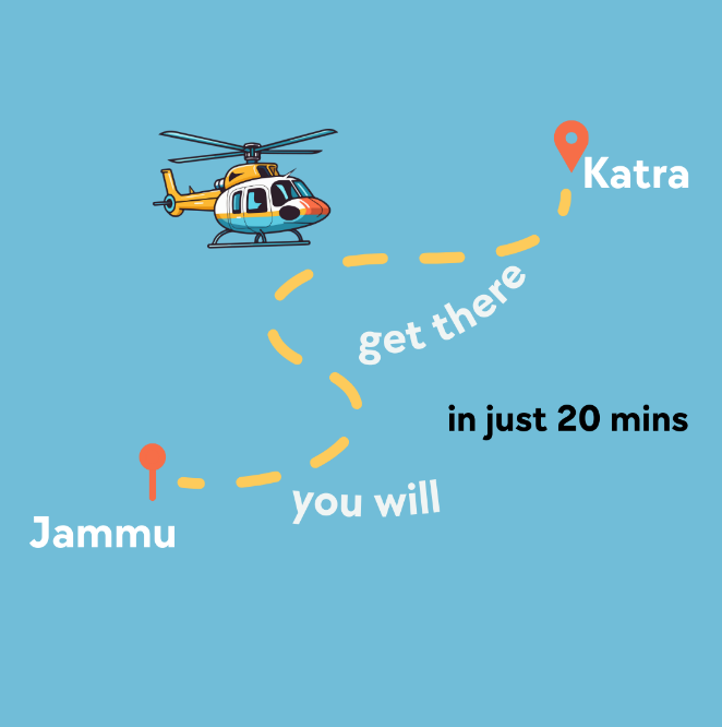 - A new service has been started for people who are aged, have some medical problems or have less time but are sincere devotees of MaaVaishnodevi. JAMMU TO KATRA CHARTER SERVICE. Now there is a direct helicopter service from Jammu Airport which will take you directly to the Katra helipad, after which MaaVaishnodevi temple is at a distance of just 2 km. A separate battery car service has been started on this new route for the ease of the pilgrims. Facility of VIP darshan at both MaaVaishnoDevi Temple and Bhaironath Ji Temple is also included in the package. So no hassle and an easy way to thank the mata rani for all her blessings.